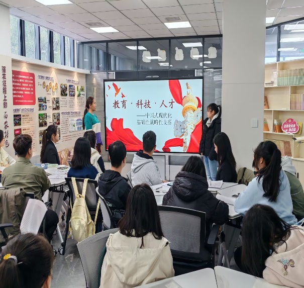 在张丽老师的精心指导下,10月27日经管学院工管类2407-2408班同学在一站式学生社区活动室举行“为改革创新注入青春力量”的主题讲评和小组研讨活动。宝源林小组同学主讲的题目是《科技创新:中国式现代化的发展引擎》,理论分析与案例分析相结合,解读创新驱动发展战略的内容,阐述科技创新的地位与贡献。高嘉悦小组同学主讲的题目是《领改革创新之路 筑青春飞扬之梦》,阐述改革创新是中国精神的核心,结合典型案例从学习理念、实践行动、文化氛围几方面阐述分析大学生如何践行改革创新精神。江语馨小组同学主讲的题目是《中国式现代化的基础性战略性支撑》,通过典型案例从教育、科技、人才三个方面,阐述战略地位和发展成效,三位一体构成中国式现代化的基础性战略性支撑。在讨论环节,同学们围绕教育数字化对大学生的影响和大学生如何有效利用数字化资源提升学习效果展开深入讨论。