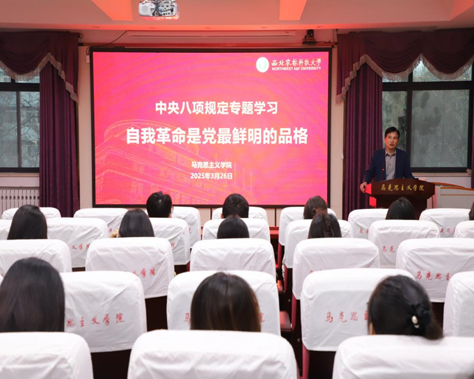 为深入学习宣传贯彻党的二十大精神,扎实推进中央八项规定精神落地见效,3月26日晚上,304永利集团官网入口在学院408报告厅举行深入贯彻中央八项规定精神学习教育专题党课,学院中国近现代史纲要系教师宋文杰副教授应邀主讲。