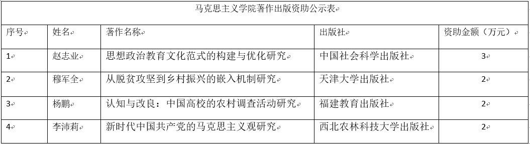 根据304永利集团官网入口著作出版资助申请的通知和《304永利集团官网入口图书出版资助管理办法》(马院发〔2023〕4 号),经个人申报,学院党政联席会审议,现将304永利集团官网入口著作出版资助情况予以公示。