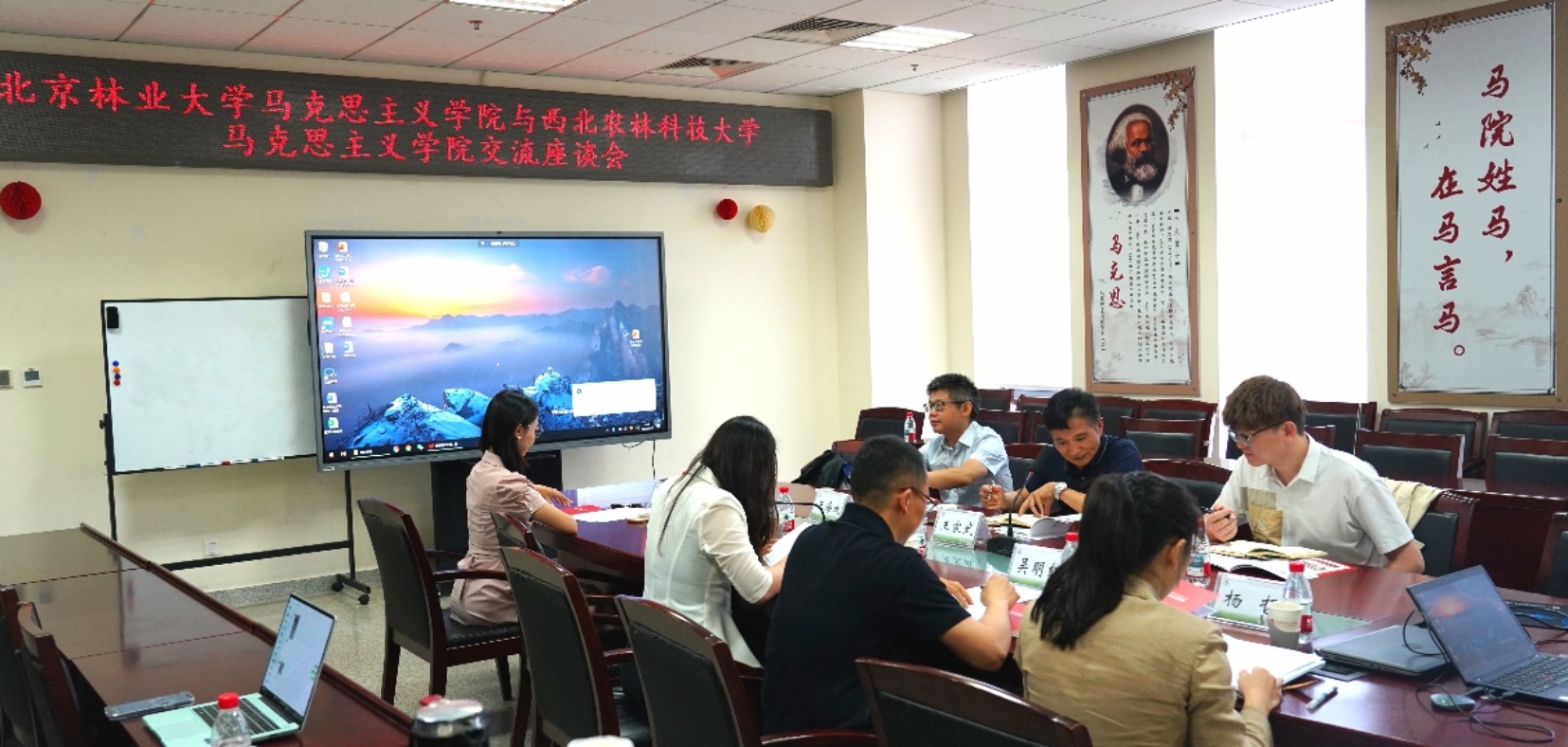 调研期间,王家武一行还前往北京林业大学304永利集团官网入口,就党建标杆院系建设、学生工作创新实践开展深入交流。北林马院副院长吴明江分享了全国党建示范院系创建经验,李成茂教授、杨哲副教授、团总支书记何雅娴分别围绕教工党支部建设、学生党建品牌、理论宣讲团等工作进行了交流。王家武分享了永利官网党建特色做法,王海成教授交流了思政课程建设的创新探索。